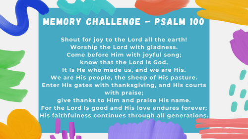 If your child would like to practice, the video is in the SKC Memory Verse section of the newsletter.